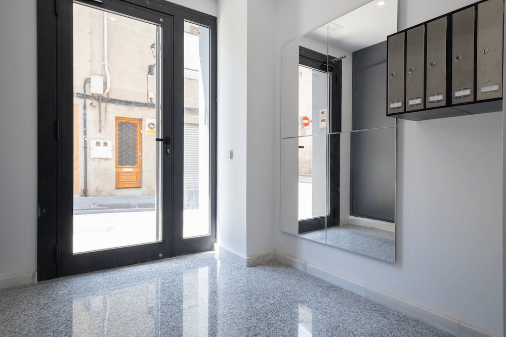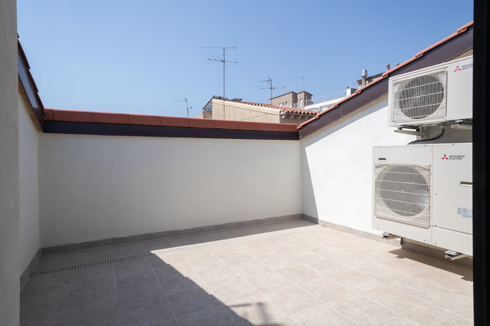 Cubiertas planas transitables en zonas comunitarias acabadas con gres y clasificación al grado de esbaladicidad 3. En terrazas y zonas privadas estarán acabadas en gres porcelanico, tomado con mortero adhesivo para exteriores y grado 3 antideslizante.
