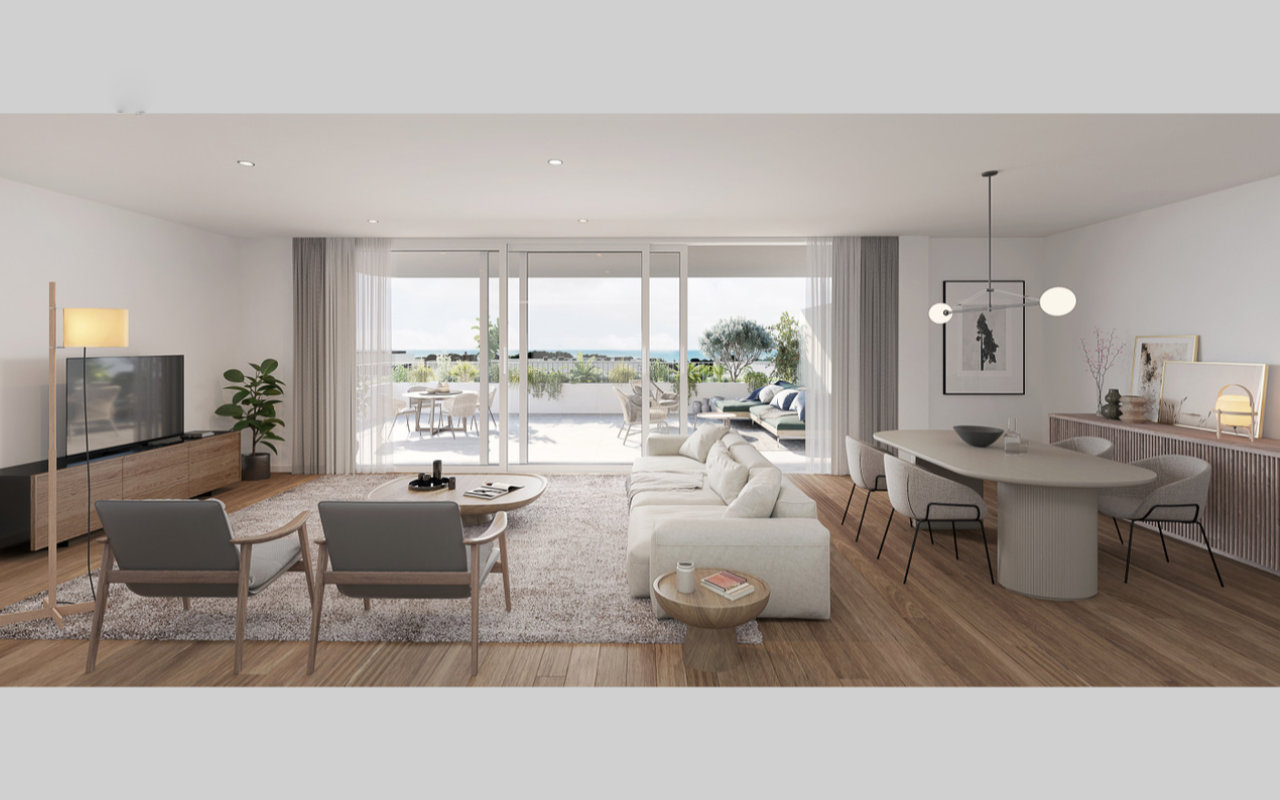 Los acabados son de alta calidad teniendo en cuenta la sostenibilidad y el ahorro energético. Carpintería interior lacada en blanco, dotando a la vivienda de un aspecto elegante y original. Puerta de acceso blindada con cerradura de seguridad de tres puntos. Pavimento de parquet laminado sintético flotante. Calefacción y aire acondicionado por aerotermia de alta eficiencia energética. Plazas de parquing y trasteros opcionales.